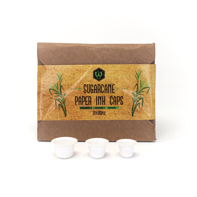 Ковпачки для татуювань на папері з цукрової тростини виготовлені з паперової маси цукрової тростини, що робить їх мікроорганізмами, що розкладаються, що виробляють вуглекислий газ і воду, не забруднюючи навколишнє середовище, а також екологічно нешкідливо.