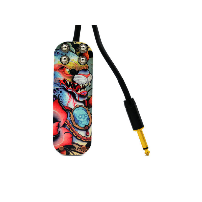 Плоска педаль для татуювання з нержавіючої сталі. Має кнопку фіксації увімкнення, завдяки чому не потрібно тримати ногу на педалі під час роботи. Не ковзає, практична. з м'яким силіконовим шнуром. Розмір: 12 * 4,2 см.